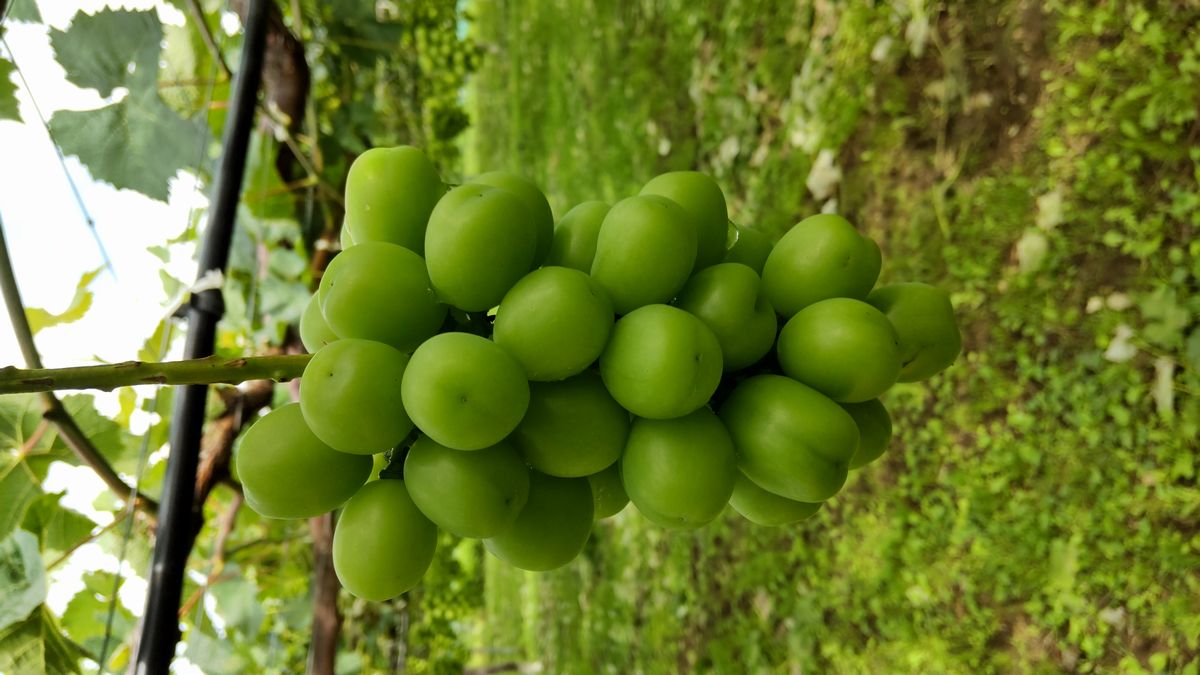 ブドウ作業の最大の難所、摘粒と袋掛けが7月18日に完了いたしました。 親戚の皆様、アルバイトの皆様のお力を借り、何とか終了。 今年は粒の着きが良すぎるくらい良く、35粒にするのに例年より大幅に手間取りましたが、その分良い房になりそうです。 粒の肥大も順調で、豊作の予感。 この先の生育を期待してます。 袋掛けの風景病気と害虫からブドウを守ります。 ![]() 摘粒後のシャインマスカット今年は粒が大きくなりそう。 ![]() なんとハート型の粒も!びっくりです。 ![]() |